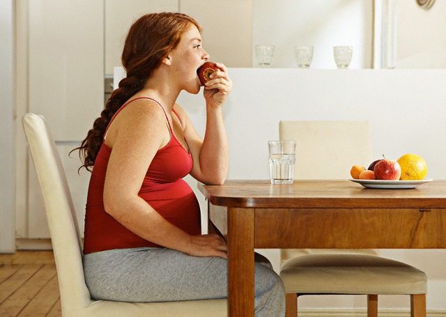 Беременная женщина нуждается в ежедневном увеличении калорийности в пище на сто калорий (первый триместр), на триста калорий (второй и третий). Это один стакан молока. Однако диета в этот период исключается. Необходим обеспечивать сбалансированный и достаточный рацион питания.